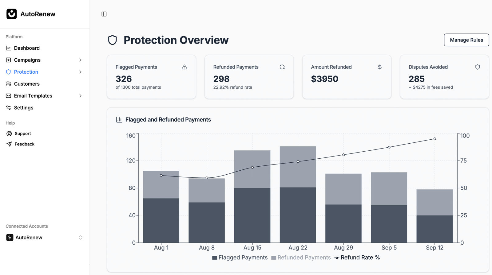 AutoRenew is an AI-powered payment recovery solution designed to help e-commerce businesses reduce churn, recover failed payments, and prevent chargebacks. We specialize in automating payment operations for businesses on Stripe.